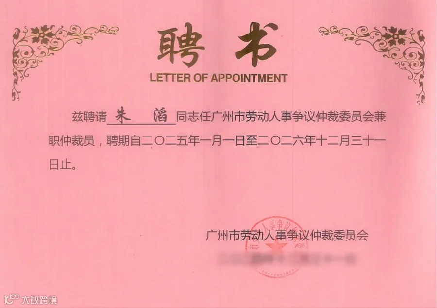 朱滔律师、黄恒律师被聘任为广州市劳动人事争议仲裁委员会兼职仲裁员以来,妥善处理了多起劳动人事争议案件。此次续聘,再次体现了广州市劳动人事争议仲裁委员会对广信君达律师在法律素养和专业能力方面的充分认可与高度肯定。未来,广信君达及律师将继续秉持“效率、信任、责任”的核心理念,致力于在未来劳动人事争议仲裁工作中,独立、公正、高效地处理每一宗案件,持续为解决劳动人事争议、推动劳动关系和谐稳定发展作出积极贡献。