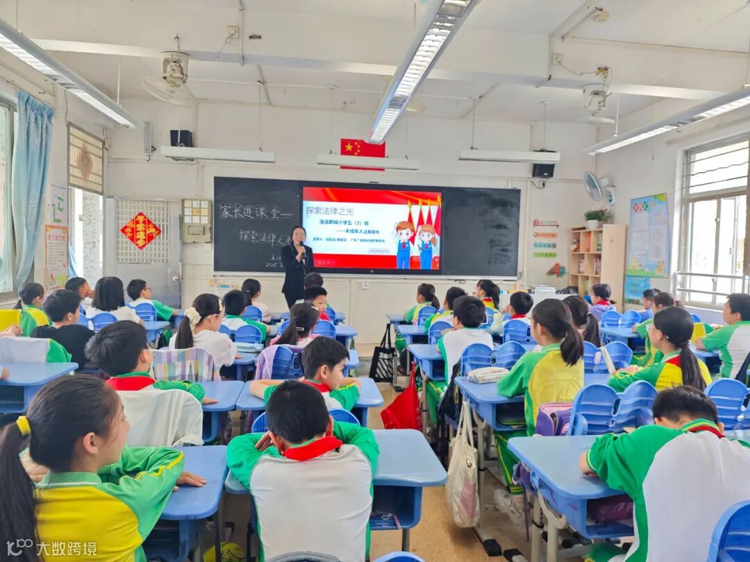 本所赖樱芸律师、实习人员白日波为广州市番禺区洛溪新城小学开展《探索法律之光-未成年人法制宣传》法律公益课。