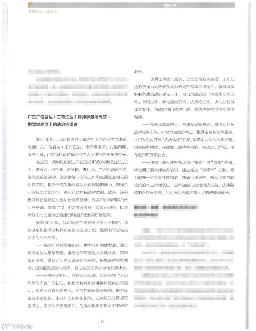 援藏 | 广信君达工布江达分所周芬律师文章在《中国律师》杂志刊发