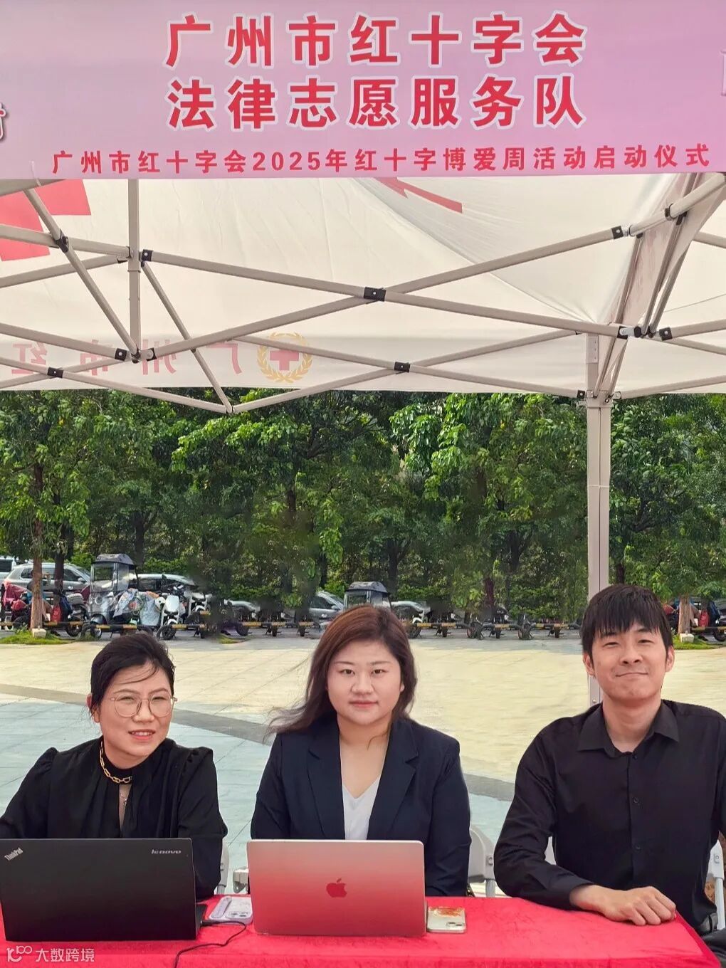 2025年5月8日,以“矢志人道·携手同行”为主题的广州市红十字会博爱周活动在黄埔区萝岗万达广场盛大启幕。作为广州市红十字会法律志愿服务队成员,广信君达律师事务所孙俊杰律师团队再次以专业力量投身公益,蒋志红律师、周秀峰律师及实习人员叶曜恺现场为市民提供法律咨询,生动诠释了“人民律师为人民”的责任担当。