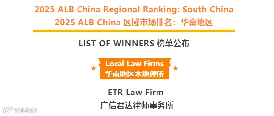 本所凭借专业的法律服务、卓越的业务水平及良好的客户口碑,再次荣登“2025 ALB China 区域市场排名:华南地区本地律所”榜单。