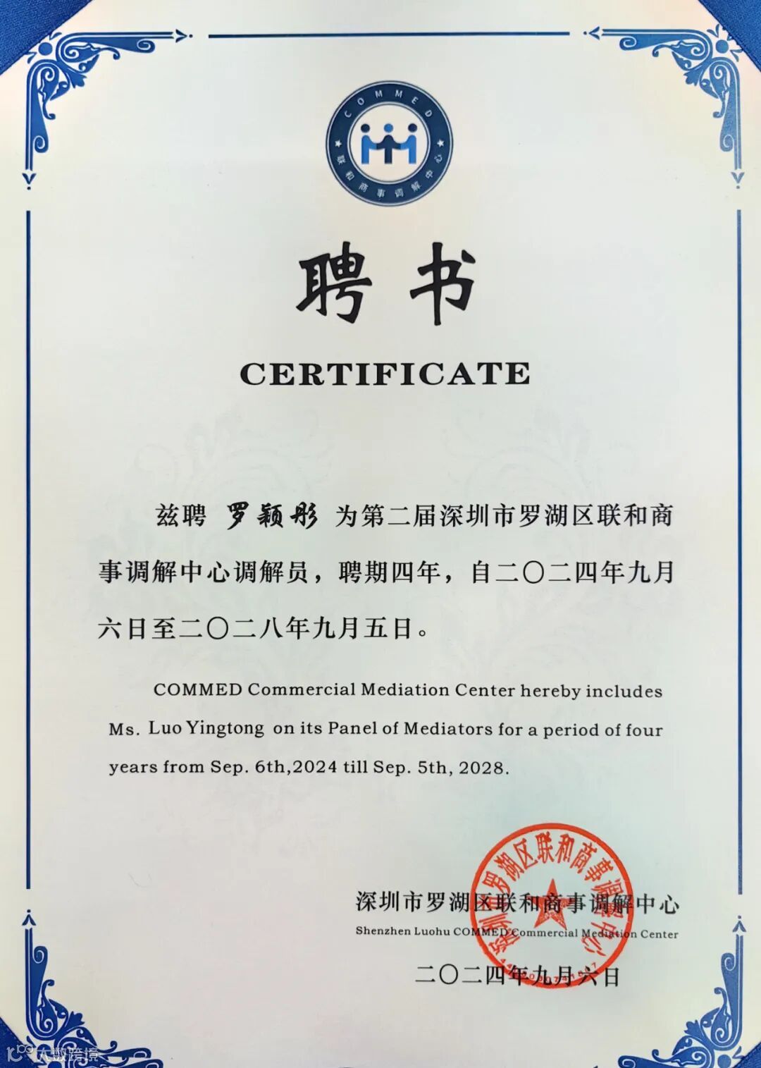 简讯|广信君达罗颖彤、梁紫欣律师受聘为深圳市罗湖区联和商事调解中心调解员
