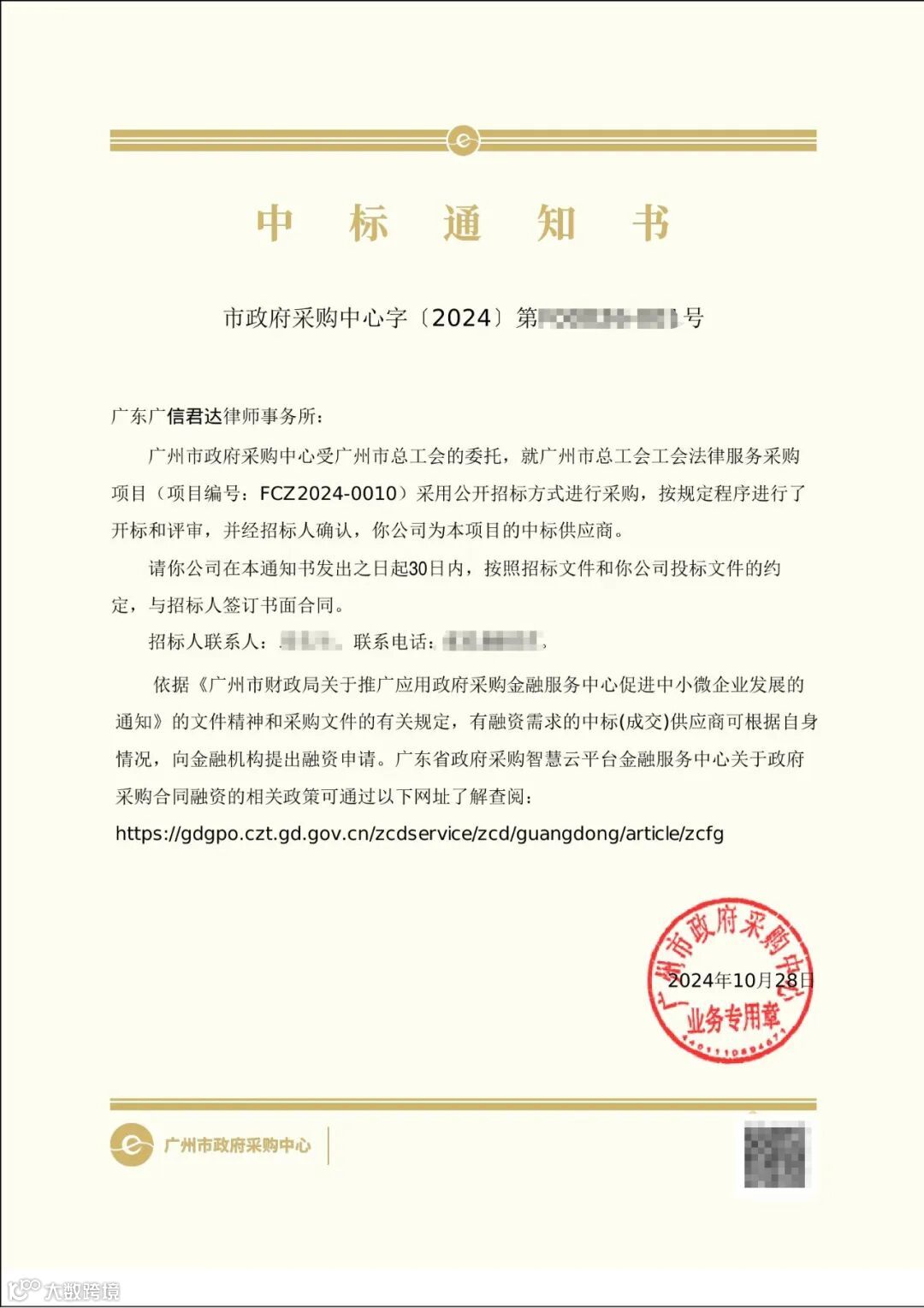 简讯 | 广信君达再次中标广州市总工会法律服务项目