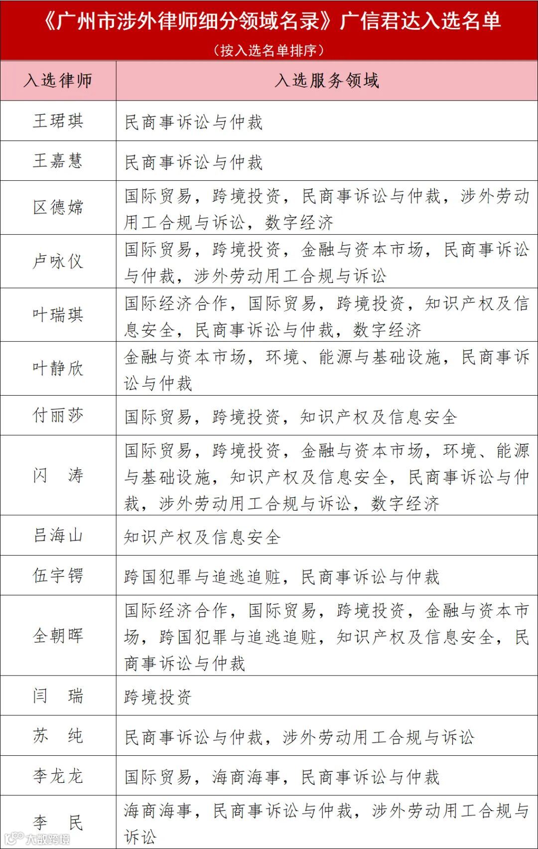 涉外 | 广信君达60名律师入选《广州市涉外律师细分领域名录》 精准对接涉外需求