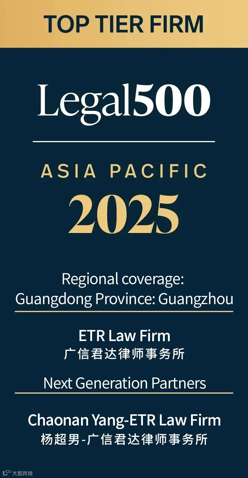 荣誉 | 广信君达及律师入选2025 The Legal 500 亚太地区大中华区榜单