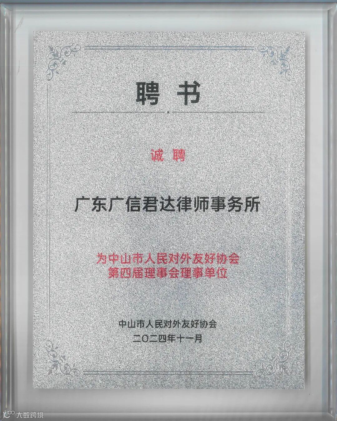 简讯 | 广信君达获聘为中山市人民对外友好协会理事单位