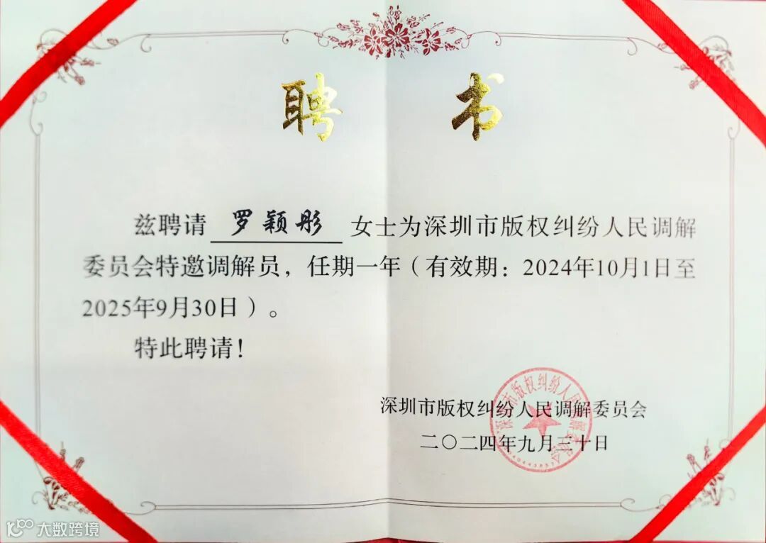 简讯|广信君达罗颖彤律师受聘为深圳市版权纠纷调委会特邀调解员