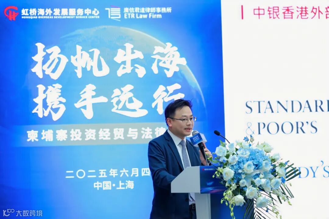 上海南虹桥投资开发(集团)有限公司党委副书记、总经理彭秀峰致辞,表示柬埔寨作为“一带一路”重要节点国家,是中企布局东盟市场的战略支点,南虹桥集团依托虹桥国际开放枢纽的平台能级、上海“五个中心”建设和长三角一体化发展的战略优势,整合法律、金融、产业等服务资源,推进中柬在数字经济、绿色能源、高端制造等领域的深度合作。