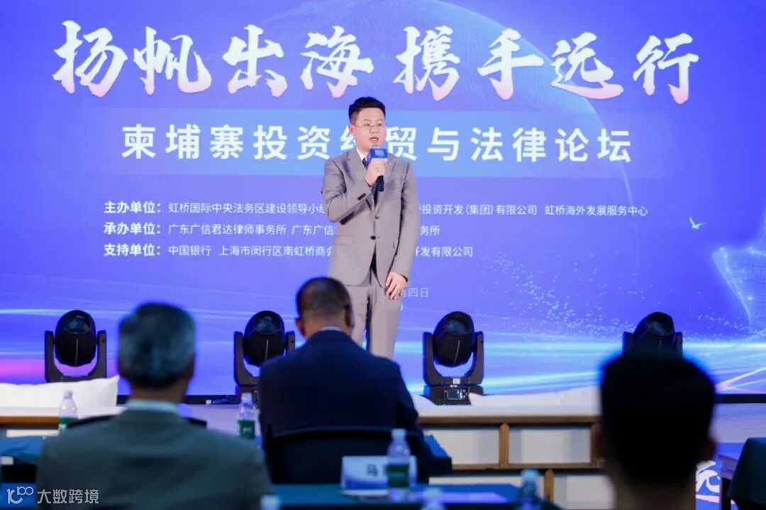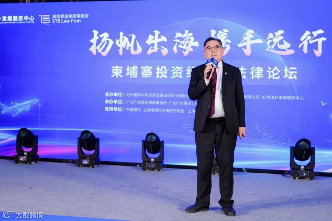 广信君达主任邓传远律师代表律所致辞。他表示,柬埔寨作为企业“出海”投资与经营的热门地,其法律服务需求正呈现出迅猛增长的态势。广信君达依托大湾区,毗邻东南亚,在包括柬埔寨金边在内的国(境)内外设有32家办公室。拥有35名粤港澳大湾区律师,40名律师同时具有境内外律师执业资格,146人次律师入选各级涉外律师领军人才库,涉外人才资源丰富,获得全国“一带一路”十佳律所荣誉,曾办理了多宗涉东南亚、“一带一路”沿线国案件获评为全国“涉外法律服务优秀案例”,完成《中国企业海外子公司合规管理体系建设法律服务指引》等课题研究,正在服务国内某新能源汽车公司出海柬埔寨、缅甸、越南、新加坡、马来西亚、菲律宾、印度尼西亚、老挝等东南亚八国专项法律服务项目。广信君达期望以本次论坛为契机,与柬埔寨、粤港澳大湾区、长三角经济区的法律服务机构、工商企业界、金融行业开展进一步的交流与合作,为中国企业“走出去”保驾护航。