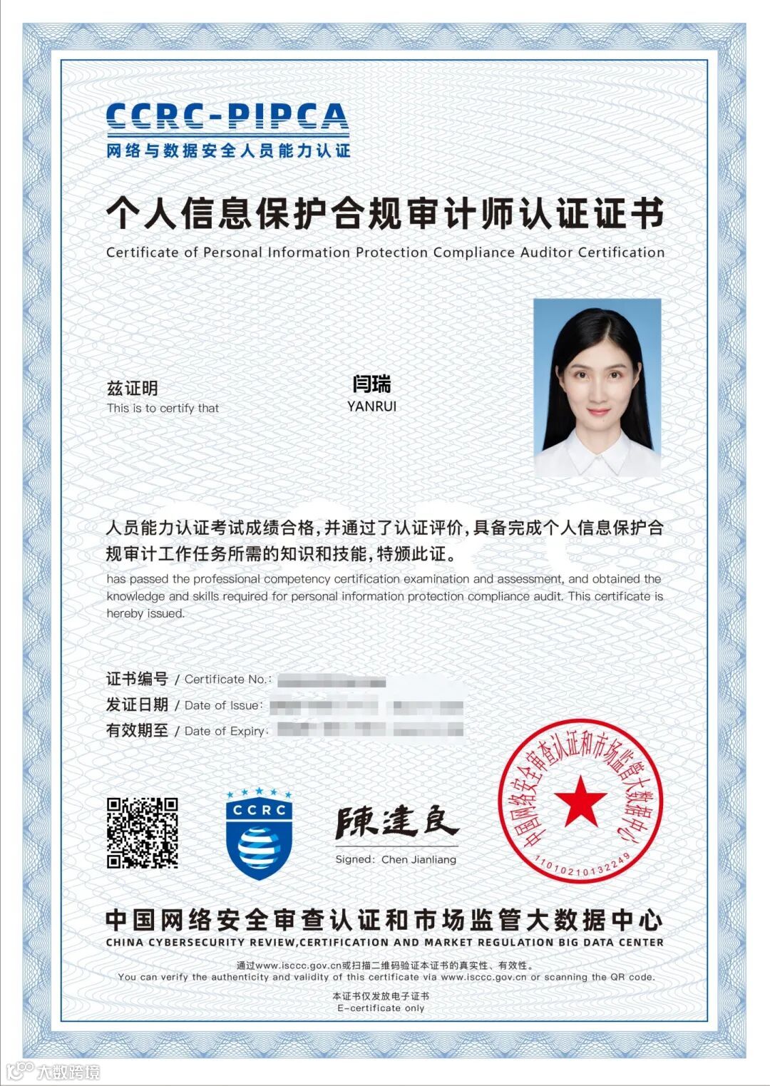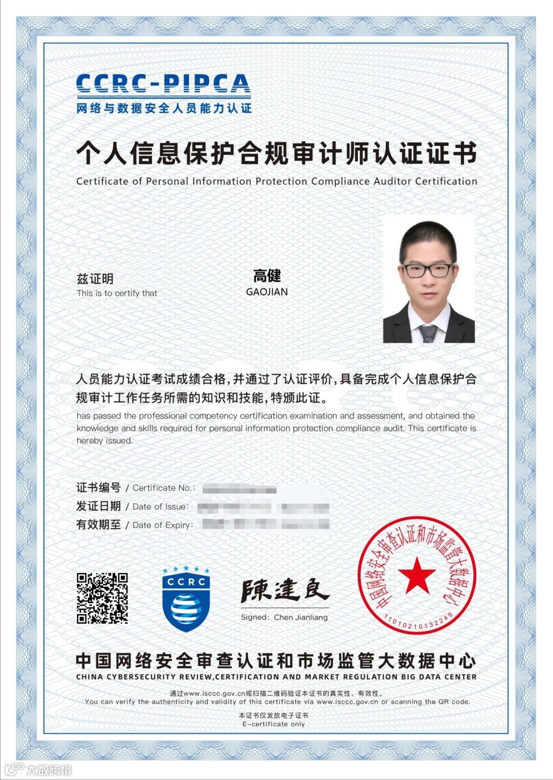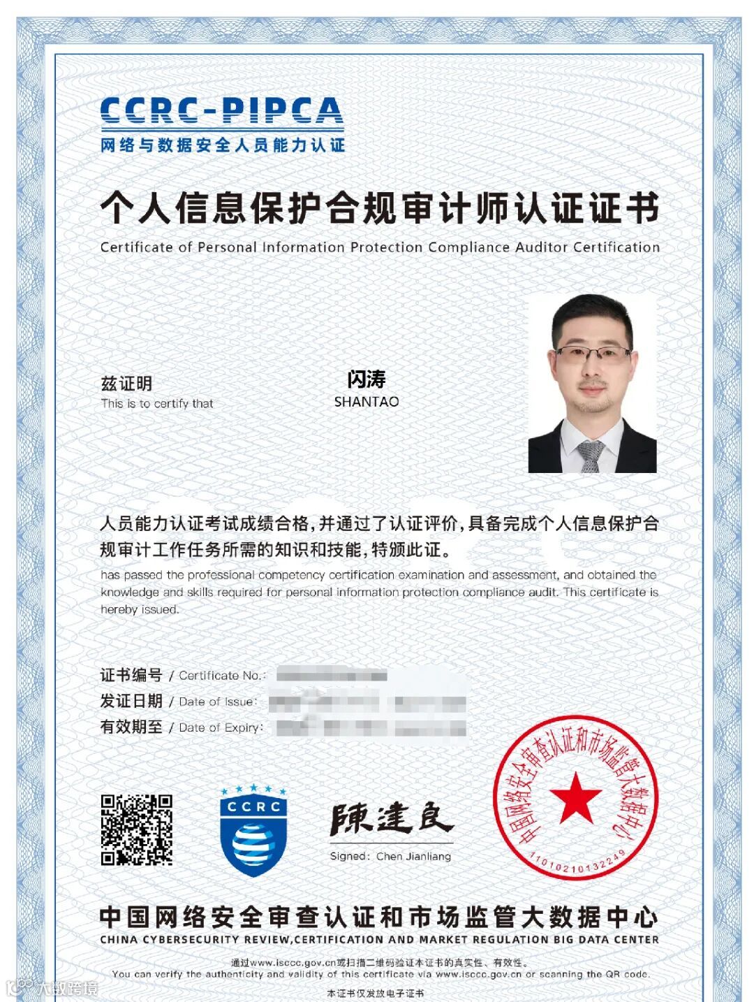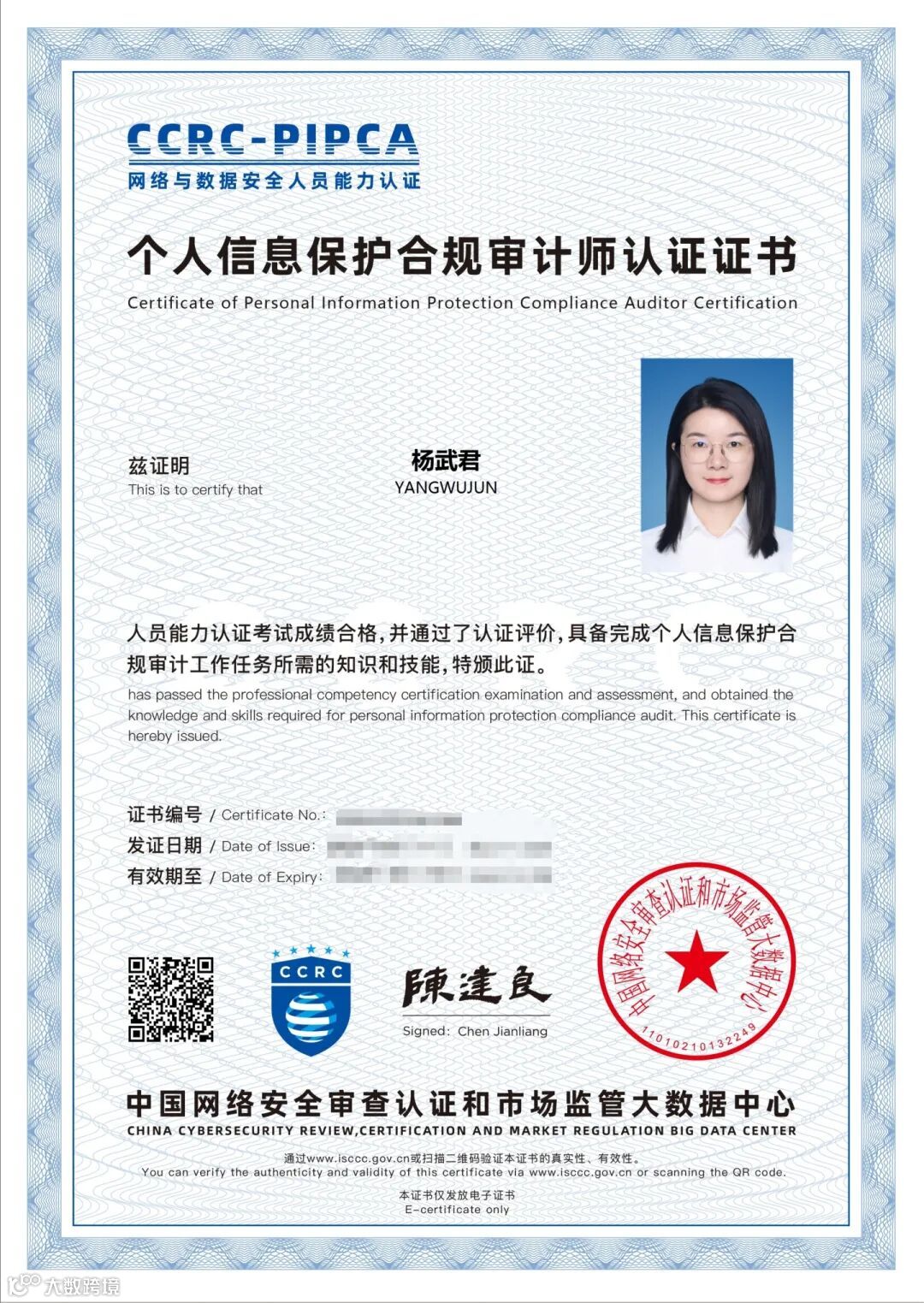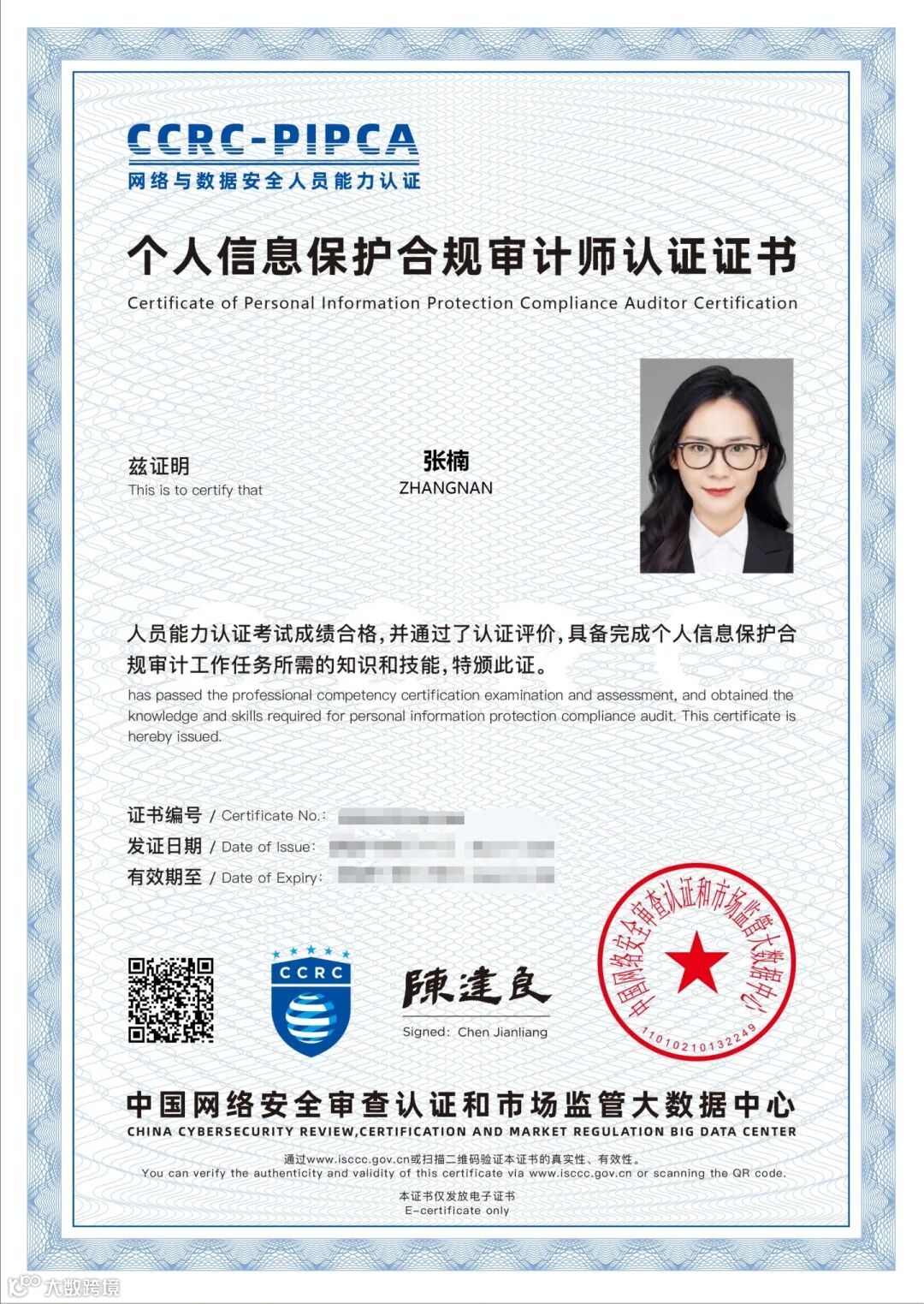 近日,经中国网络安全审查认证和市场监管大数据中心认证考试及专家严格审核评定,广信君达律师事务所数字经济法律专业部部长、高级合伙人闪涛律师,副部长、合伙人杜禹静律师和杨武君律师,合伙人闫瑞律师、张楠律师以及冯梨莹律师、高健律师7名律师获得“个人信息保护合规审计师认证”证书。