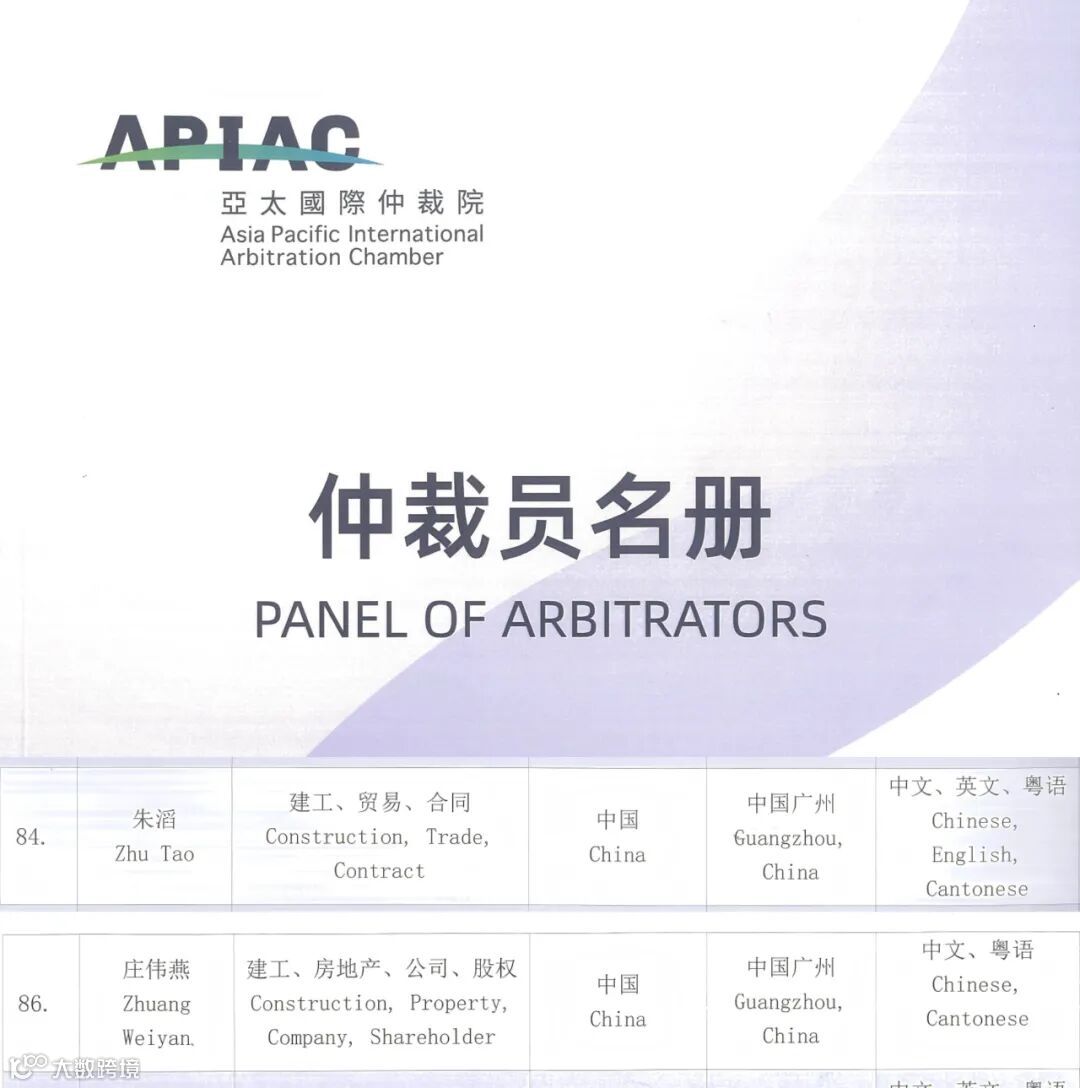 简讯 | 广信君达合伙人朱滔律师获聘为亚太国际仲裁院仲裁员