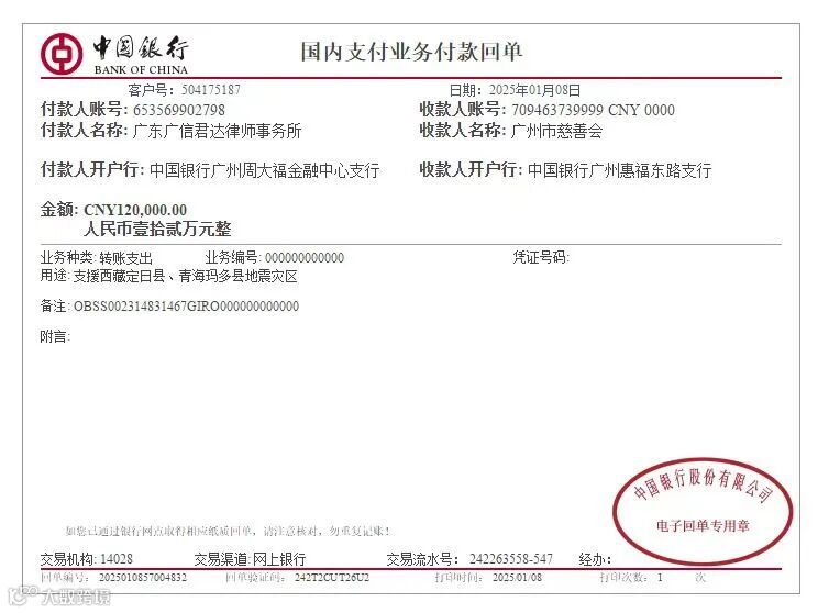 慈善|广信君达总分所律师踊跃捐款支援西藏青海受灾家庭及震后重建