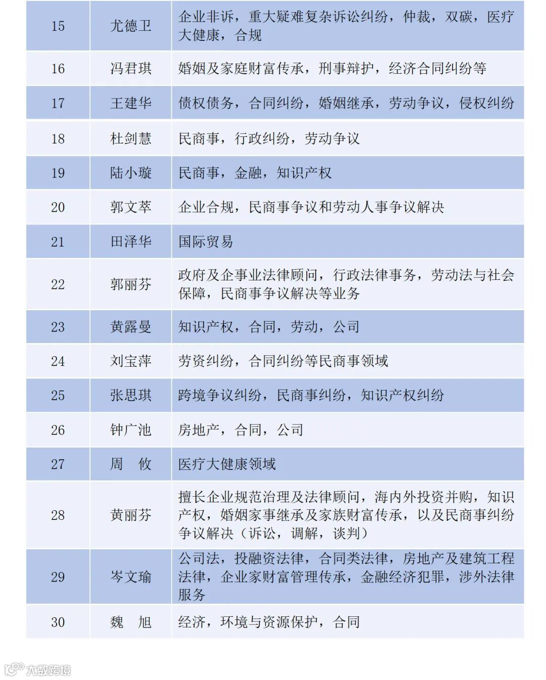 本所30名律师、员工入选广州市调解协会首批调解专家库,专业领域涵盖国际民商事、知识产权、劳动争议、金融纠纷等多个领域;粤港澳大湾区执业律师黄劲、马耀添及高级合伙人闪涛律师入选粤港澳大湾区调解员名册;高级合伙人闪涛律师当选广东省数字经济学会第一届理事;高级合伙人朱滔律师获聘为亚太国际仲裁院仲裁员;合伙人朱宇倩律师入选为广州市知识产权研究会专家库及湖南省创业导师;黄丽芬律师获聘为广州市婚姻家庭纠纷人民调解委员会调解员。