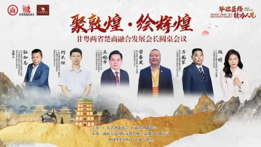 9月16日下午,“聚敦煌·绘辉煌”甘粤两省楚商融合发展会长圆桌会议,在甘肃省敦煌市举行,孙加志、柯长征、王晓华、常春发、马光军、钱婷6位企业家及业界代表作主旨发言。