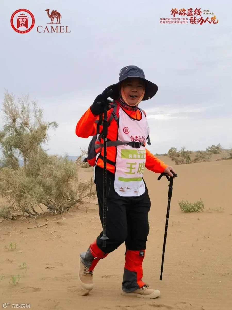 熊娟衷心佩服王晓华主任的毅力,他已经63岁了,在每天30公里路程、7-8小时的沙漠戈壁徒步中,最终坚持走完全程,充分体现出他的毅力与精神。要知道,沙漠戈壁中行走1公里,相当于平地行走约3公里,足见沙漠戈壁徒步的艰辛。