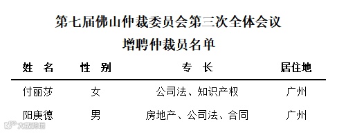 近日,第七届佛山仲裁委员会第三次全体会议顺利召开,会议决定增聘33名仲裁员,进一步扩充了仲裁员队伍。广信君达律师事务所合伙人付丽莎律师及兼职律师阳庚德获聘担任第七届佛山仲裁委员会仲裁员。