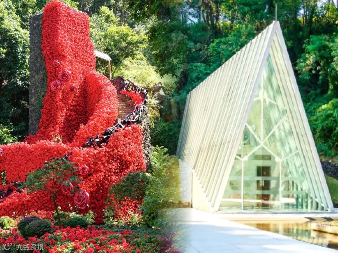 复古建筑与绚丽鲜花的融合