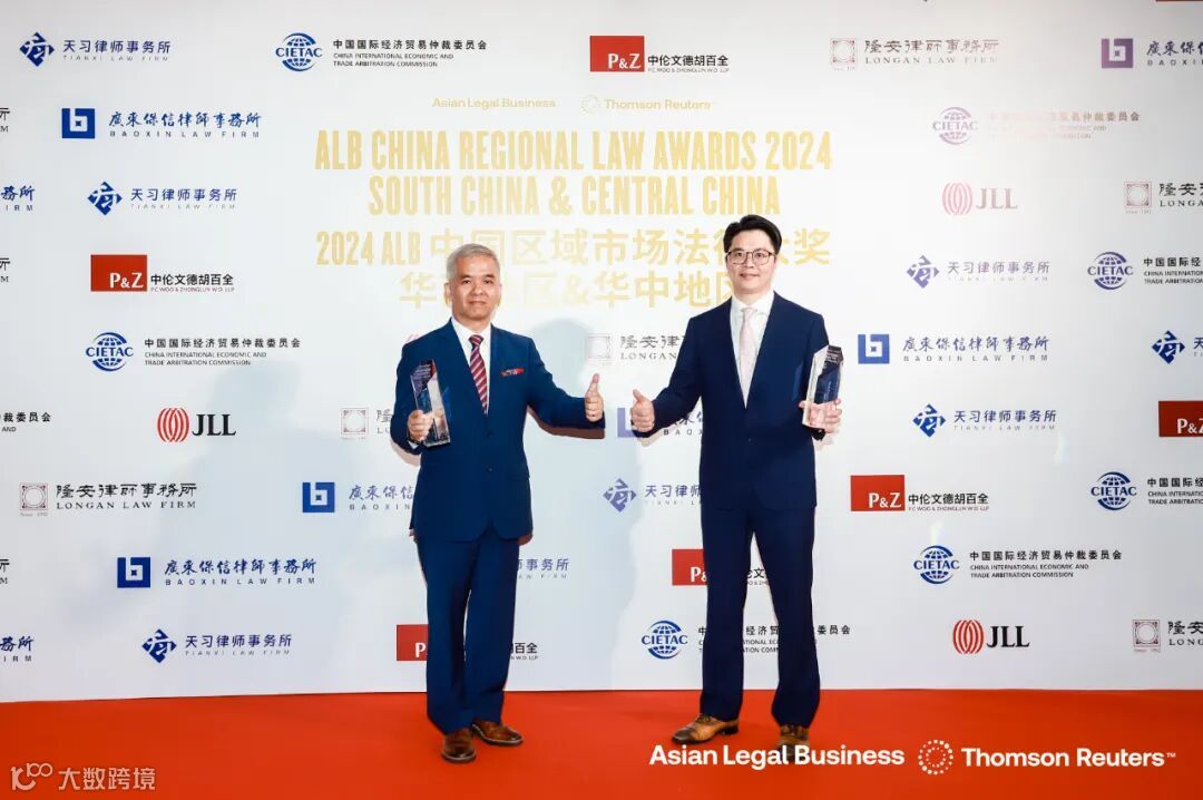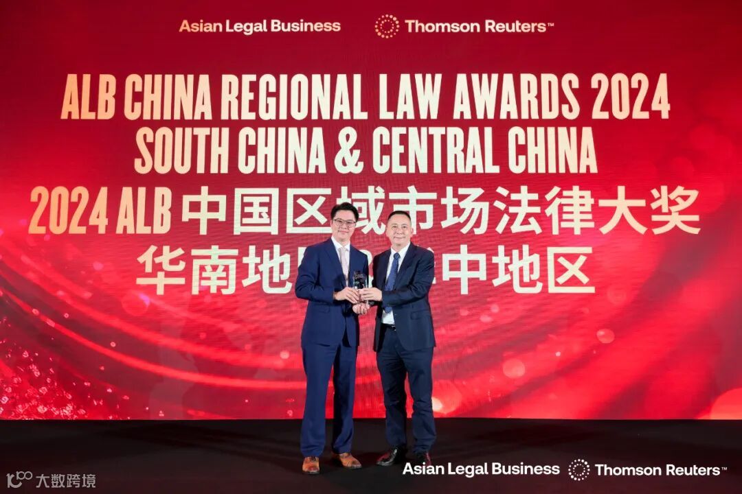 2024年12月6日晚,《亚洲法律杂志》(ALB)2024中国区域市场法律大奖:华南地区&华中地区颁奖典礼在深圳举行,广信君达律师事务所再次荣获年度华南华中地区争议解决律师事务所大奖,律所主任、高级合伙人邓传远律师荣获年度华南华中地区管理合伙人大奖。广信君达高级合伙人全朝晖、梁沐周律师受邀参加活动。