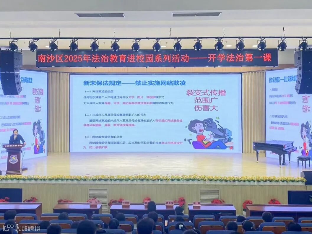 2025年春季开学首日,广州市南沙区滨海实验学校迎来“开学法治第一课”。广信君达律师事务所合伙人许悦敏律师受邀担任主讲人,以“预防学生欺凌 构建健康校园”为主题,为师生带来一堂兼具专业性与感染力的法治教育课。