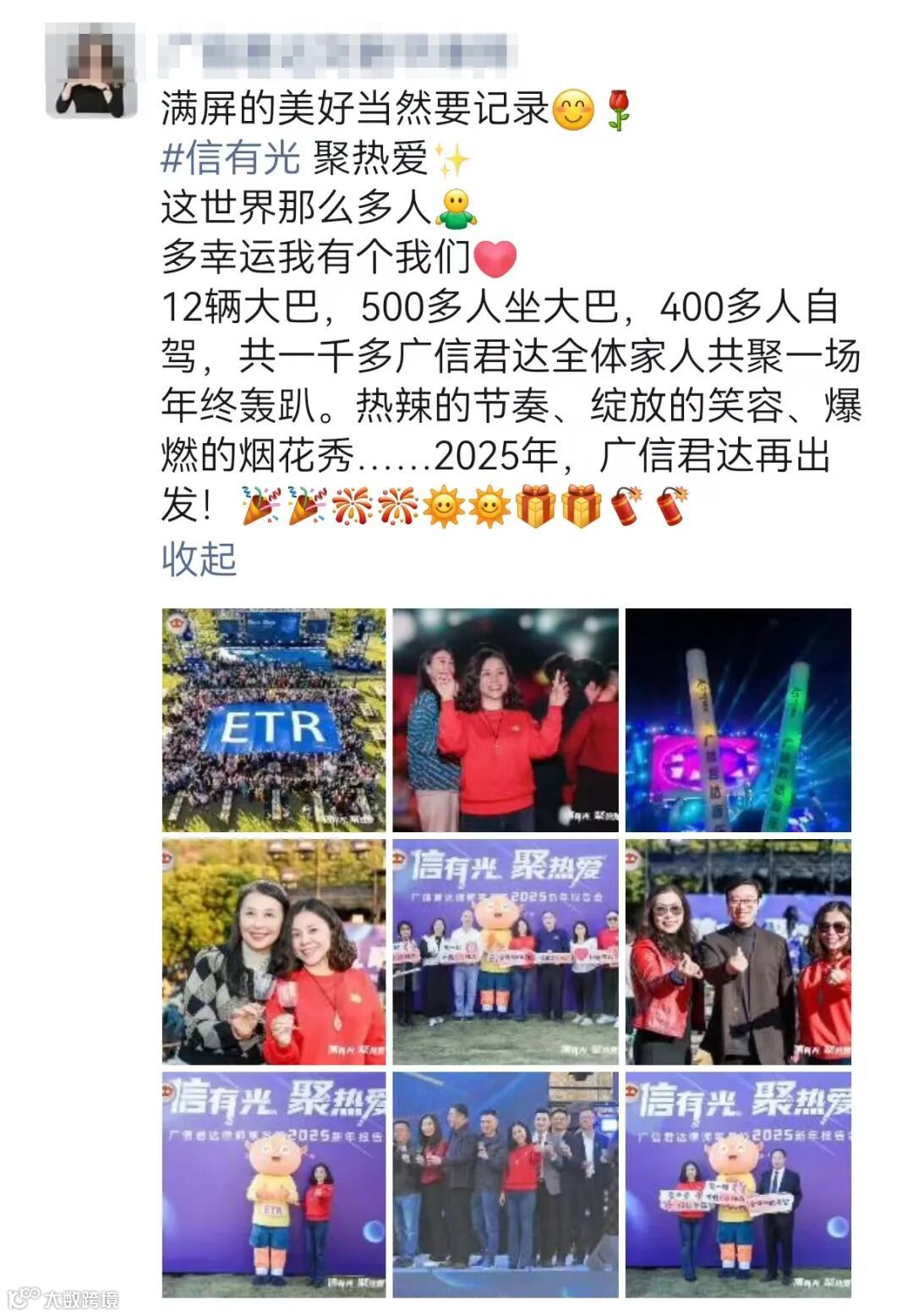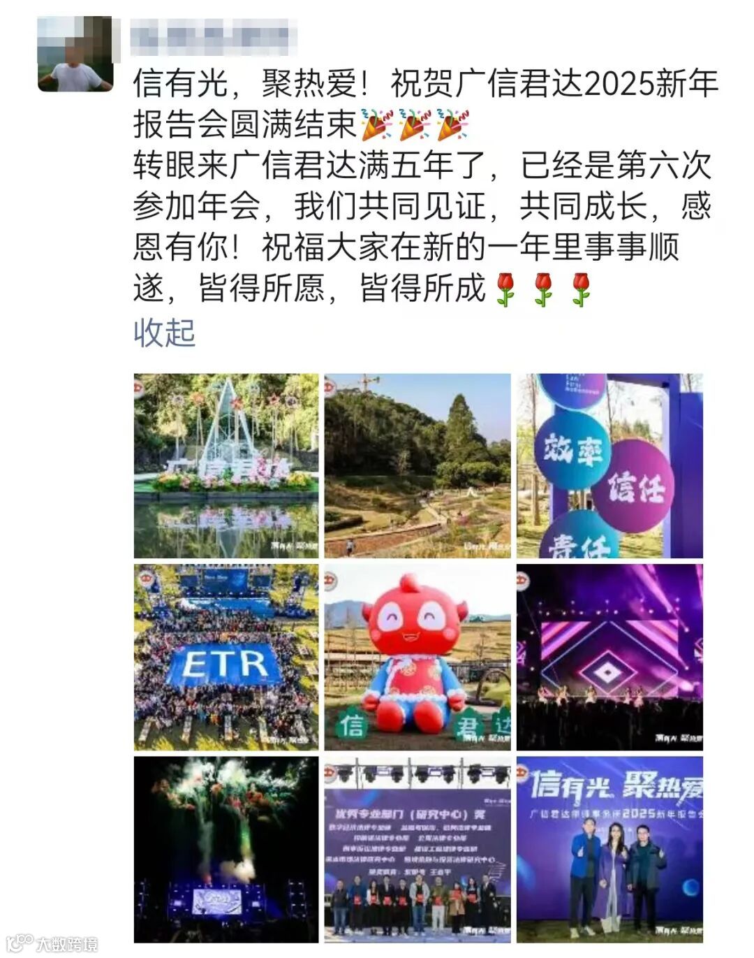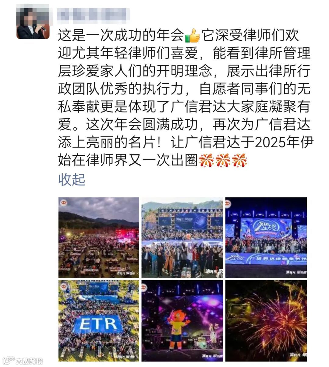这些画面刷屏各大社交平台,流转于亲朋好友的对话框中,一次次的转发与分享,让更多小伙伴感受到广信君达的热情与活力,进一步扩大了年会的影响力,让这份美好的记忆跨越了时空的界限。