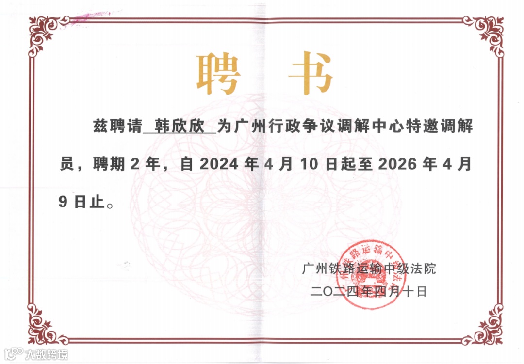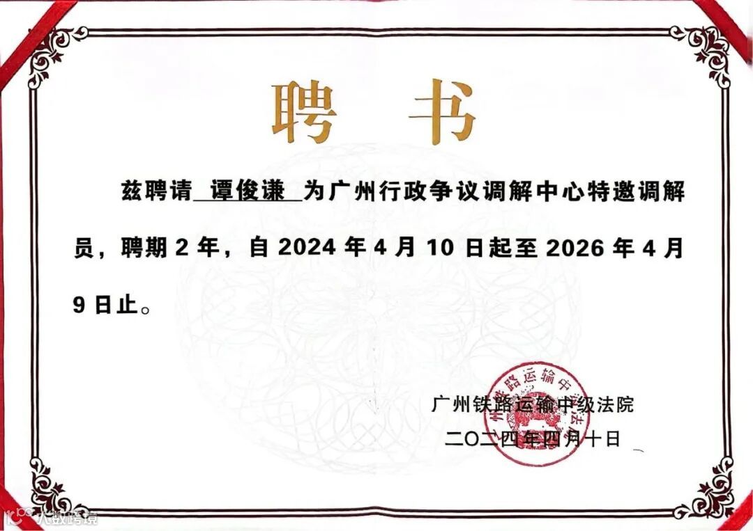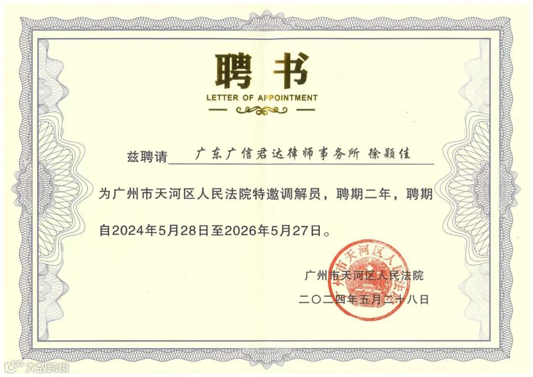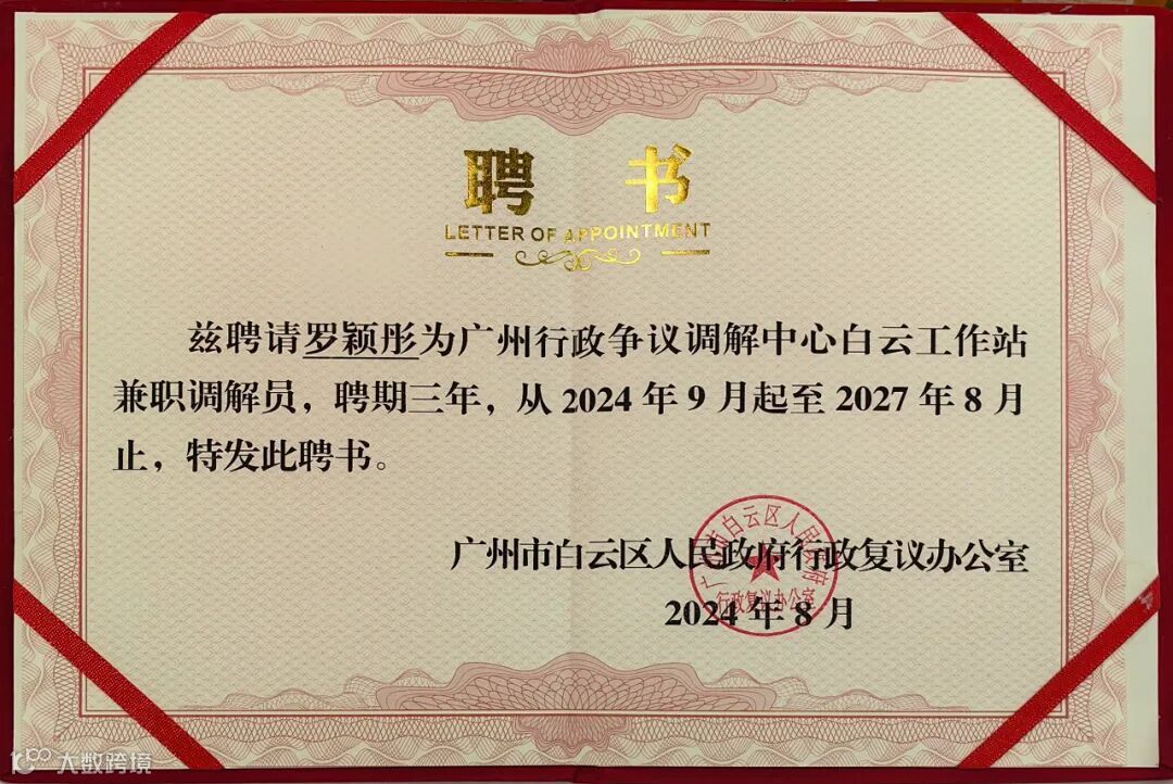 简讯 | 广信君达罗颖彤律师获聘为广州行政争议调解中心白云工作站兼职调解员