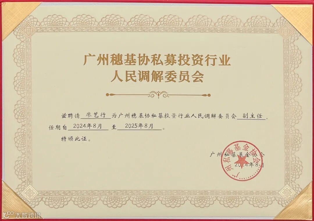简讯 | 广信君达廖艺行律师获聘为广州穗基协私募投资行业人民调解委员会副主任