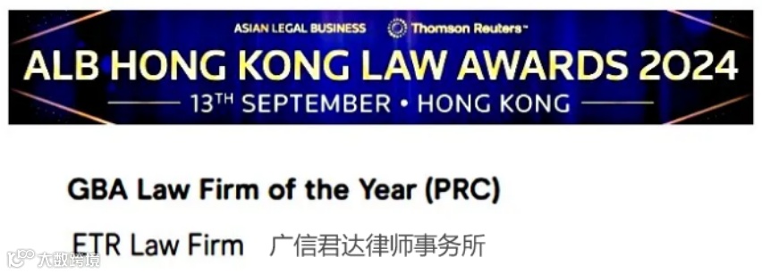 荣誉丨广信君达入围ALB 2024香港法律大奖“年度大湾区律师事务所”