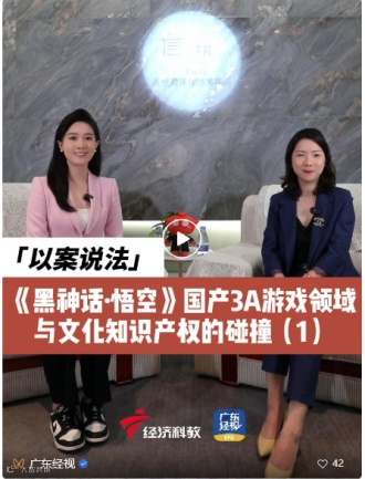 报道 | 《黑神话:悟空》国产3A游戏领域与文化知识产权的碰撞,广东经视采访广信君达朱宇倩律师