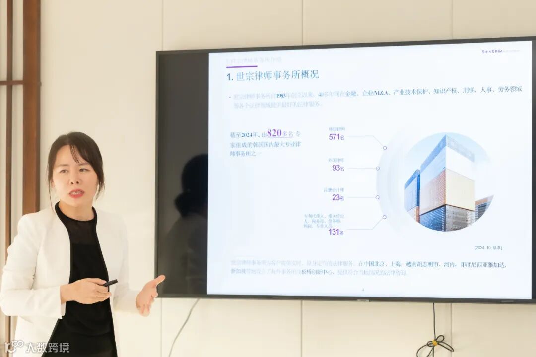 李英律师对本所的热情接待表示感谢,并详细介绍世宗律所的发展历程、业务领域、专业团队以及在韩法律服务市场的特色与优势。李律师指出,在全球化浪潮中,中韩两国企业的海外布局与商贸往来日益频繁,催生的对外法律服务需求正不断攀升。她期望通过此次交流,能够基于世宗律所现有的业务强项,进一步加深中韩两家律所在涉外法律服务领域的紧密联系。
