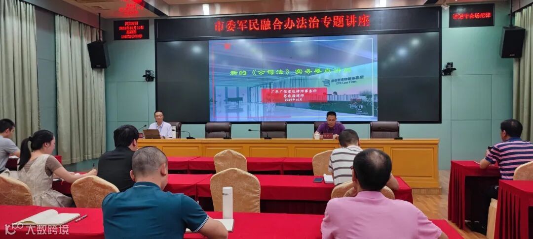 培训 | 广信君达合伙人苏东海律师应邀为佛山市委军民融合办讲授新《公司法》