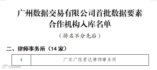 本所成功入选广州数据交易有限公司首批数据要素合作机构。