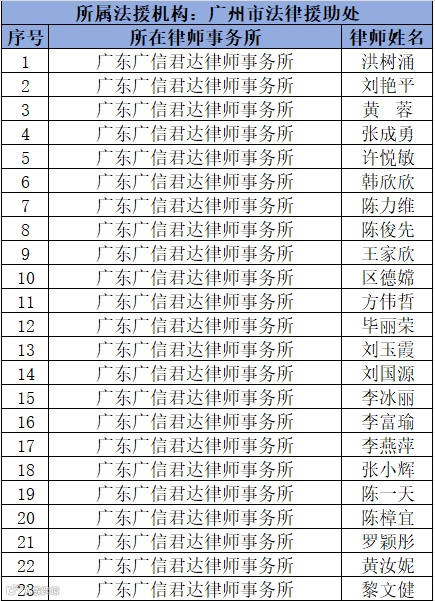 公益|广信君达89名律师入选广州市常备法律援助人员名单