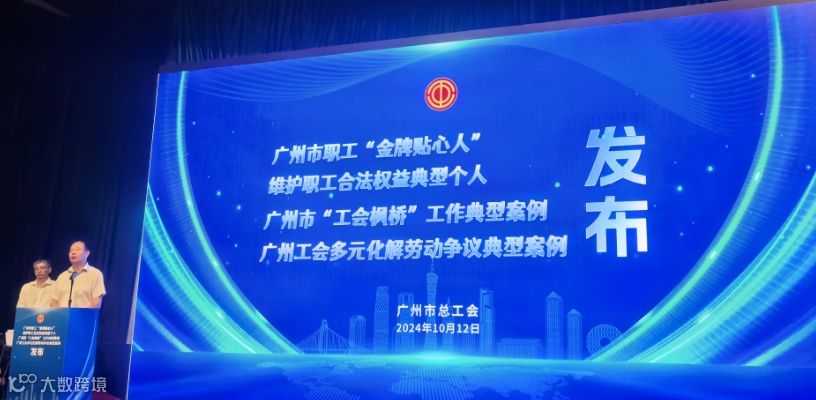 2024年10月12日,广州市总工会举办维护职工合法权益典型个人、广州市职工“金牌贴心人”和“工会枫桥”工作典型案例等发布活动,同时发布了《广州市“工会枫桥”工作典型案例》和《广州工会发展新时代“枫桥经验”多元化解劳动争议典型案例》。广州市人大常委会副主任、市总工会主席唐航浩及市人社局、市法院、市司法局、市劳动人事争议仲裁院、市律协等单位负责同志出席活动。