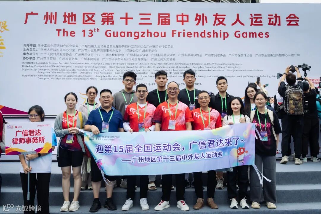 2024年10月26至27日,广州地区第十三届中外友人运动会成功举行。本届运动会由十五运会和残特奥会广州赛区执委会指导,广州市外办、致公党广州市委员会联合主办。来自59个国家和地区的1000多名在穗友好人士参加比赛,广信君达律师事务所作为唯一参赛律所,在足球、篮球、羽毛球、乒乓球、网球等项目中,与中外友人同台竞技、共叙友谊,共同营造粤港澳大湾区喜迎十五运会的良好氛围。