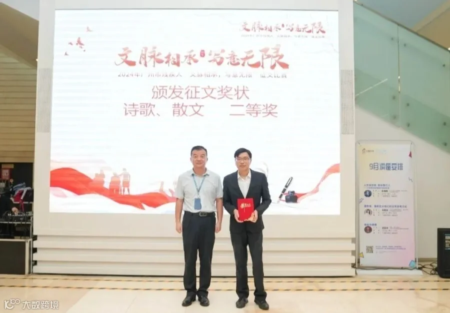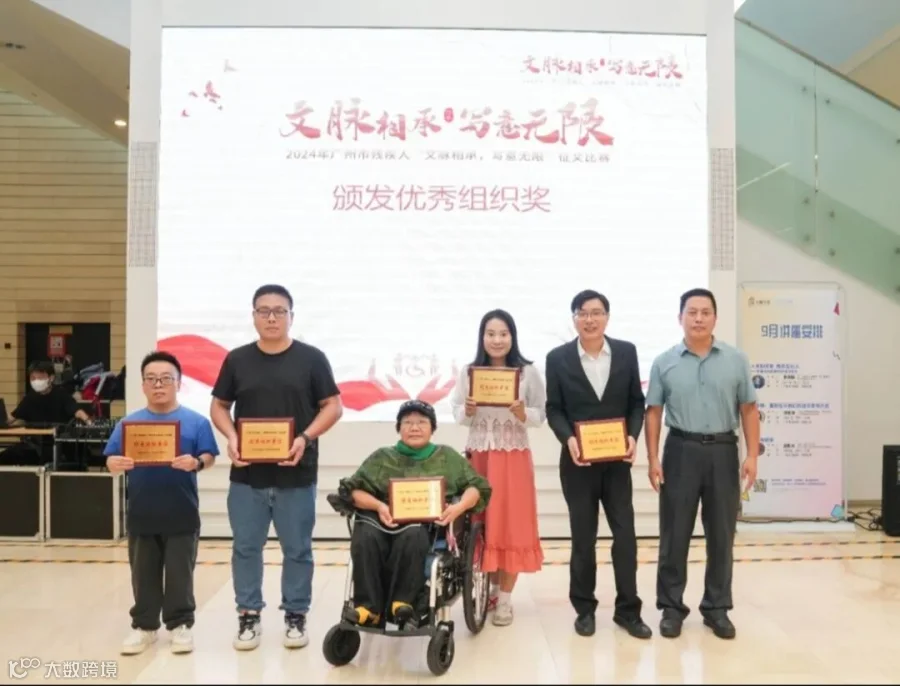 2024年9月30日,“文脉相承 写意无限”广州市残疾人文学作品征文活动颁奖仪式在广州图书馆举行。活动由广州市残疾人联合会、广州市文学艺术界联合会联合主办,广州国际残障人文化交流中心、广州图书馆共同承办。广州国际残障人文化交流中心主任陈景辉,广州图书馆文献流通部副主任李保东,中国作家协会会员、广东省朗诵协会常务副会长兼秘书长王国省等嘉宾出席了颁奖仪式,并为获奖者颁发了奖项。