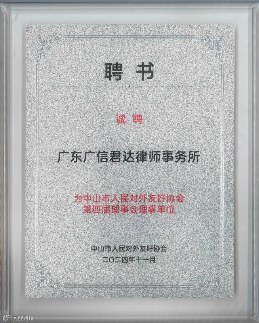 广信君达此次获聘为中山友协理事单位,将积极发挥法律专业优势,为推动中山市民间友好往来、促进文化和经贸合作贡献法治力量,搭建起中山市与世界各地的沟通桥梁,为中山市的法治工作注入新的活力和动力。