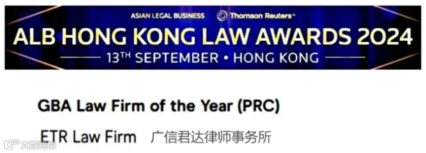 近日,汤森路透旗下的《亚洲法律杂志》(Asian Legal Business),公布了2024香港法律大奖(ALB Hong Kong Law Awards)入围名单,其中,广信君达律师事务所获得“年度大湾区律师事务所(GBA Law Firm of the Year)”提名。