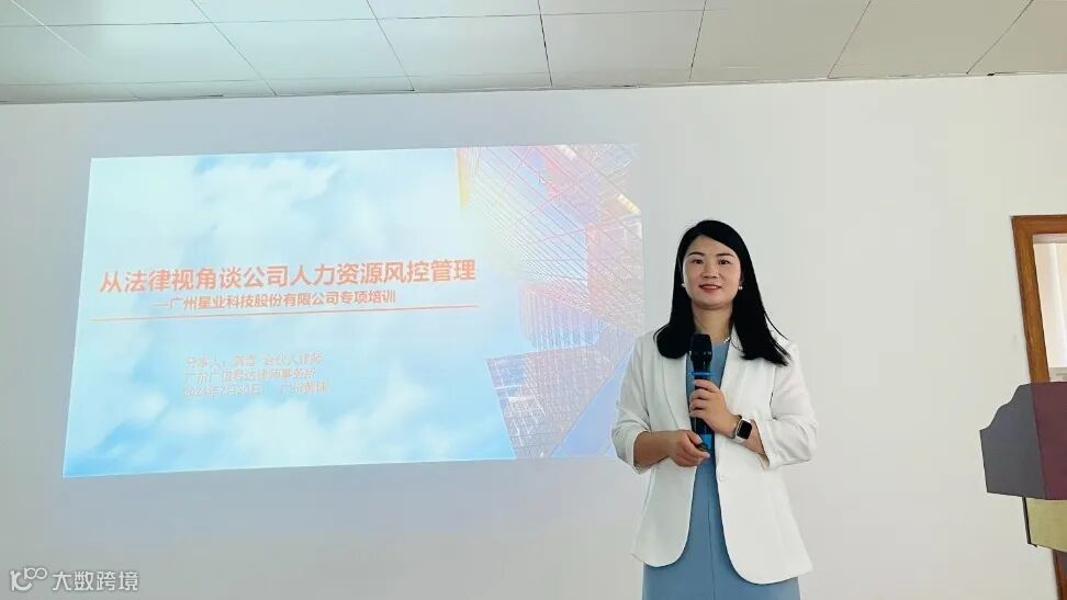 随着现代商业的高速发展,人力资源精细化管理是企业发展的基石。为进一步降低企业人力资源管理中的法律风险,提升人力资源管理工作的效能,2024年7月30日,广信君达律师事务所合伙人龚雪律师受邀为广州星业科技股份有限公司(简称“广州星业科技”)作“从法律视角谈公司人力资源风控管理”主题培训。广州星业科技近30位核心管理层及关键部门负责人参与。