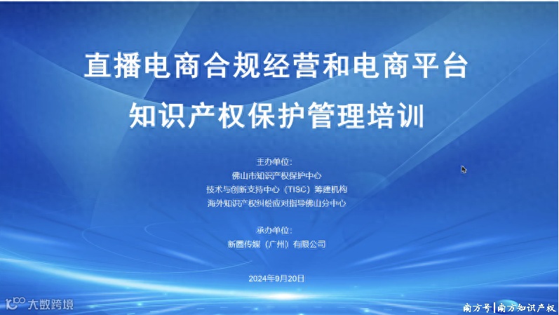 为有效应对直播电商行业知识产权保护面临的挑战,提升直播电商企业合规经营及知识产权保护意识,促进电商行业规范健康发展,佛山市知识产权保护中心聚焦电商直播热点问题,举办直播电商合规经营和电商平台知识产权保护管理线上培训,本所合伙人向劲律师应邀开展“《电子商务平台知识产权保护管理》国家标准解读以及直播电商合规经营、风险规避策略”主题培训。