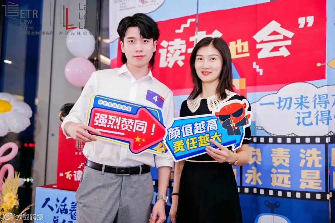 “Timing君”黄丽榆律师、卢思彤实习人员精准掐表,“哼哈君”刘国源律师、穆清风实习人员沉迷找“茬”,“语法君”杨茂律师、乐清月律师火辣点评,“穿搭君”何倩琪实习生、黄凯莹实习生pick最佳,“气氛君”张杨实习生、梁铠麒律师hold住全场,“护筒君”沈钦彪律师与赖静宜律师一心“打广”,他们一路点燃现场应援团的热情,让青年朋友们在欢声笑语中打开思维、拉近关系、汲取知识。