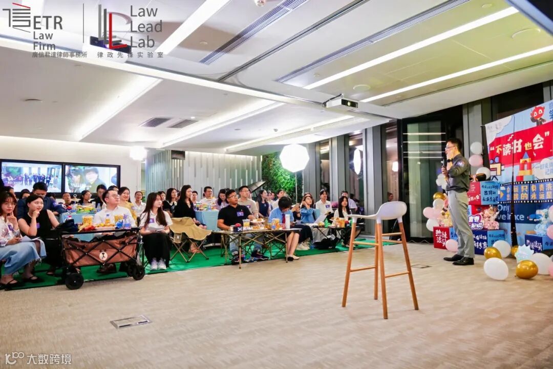 在现场守候全程的一位资深前辈(广信君达高级合伙人、管委会联席主任朱滔律师)被青年朋友的热情点燃,忍不住现身爆“梗”,对他们大胆开麦、自信洒脱的个性给予赞美,对后辈积极向上、自律团结的面貌大大点赞,对活动环节筹备的小缺点、创新度提出建议,并对青年朋友提出的“诉求”一一回应。
