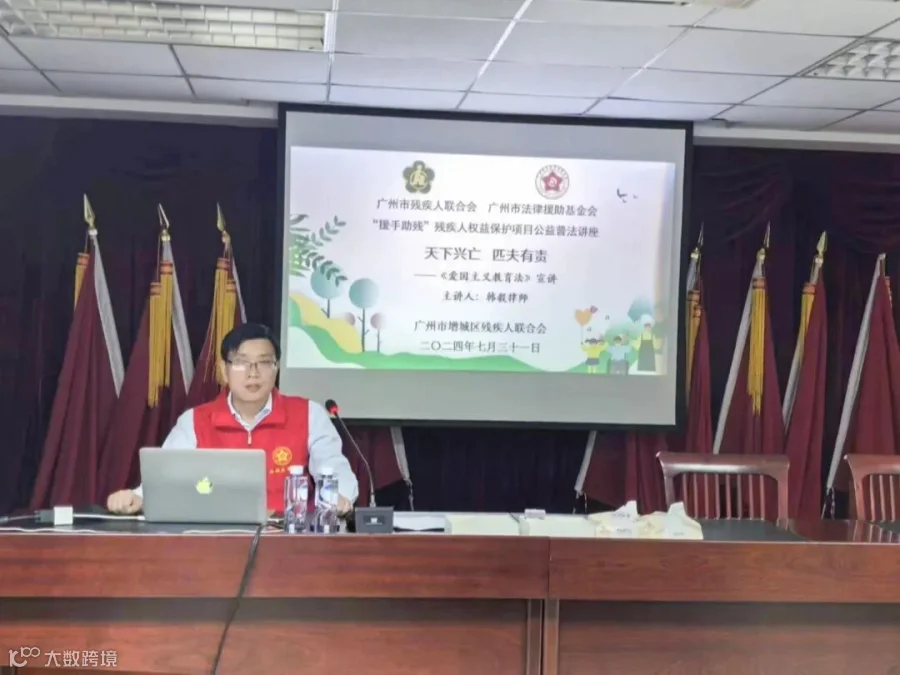 2024年7月31日,广信君达律师事务所韩毅律师,受广州市法律援助基金会指派,前往增城区残疾人联合会,为50多名残疾人及残疾人工作者带来了一场生动的《爱国主义教育法》讲座。