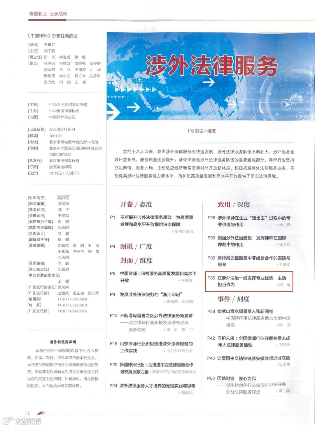 简讯 | 《中国律师》刊载广信君达闪涛律师文章《在涉外法治一线发挥专业优势 主动担当作为》