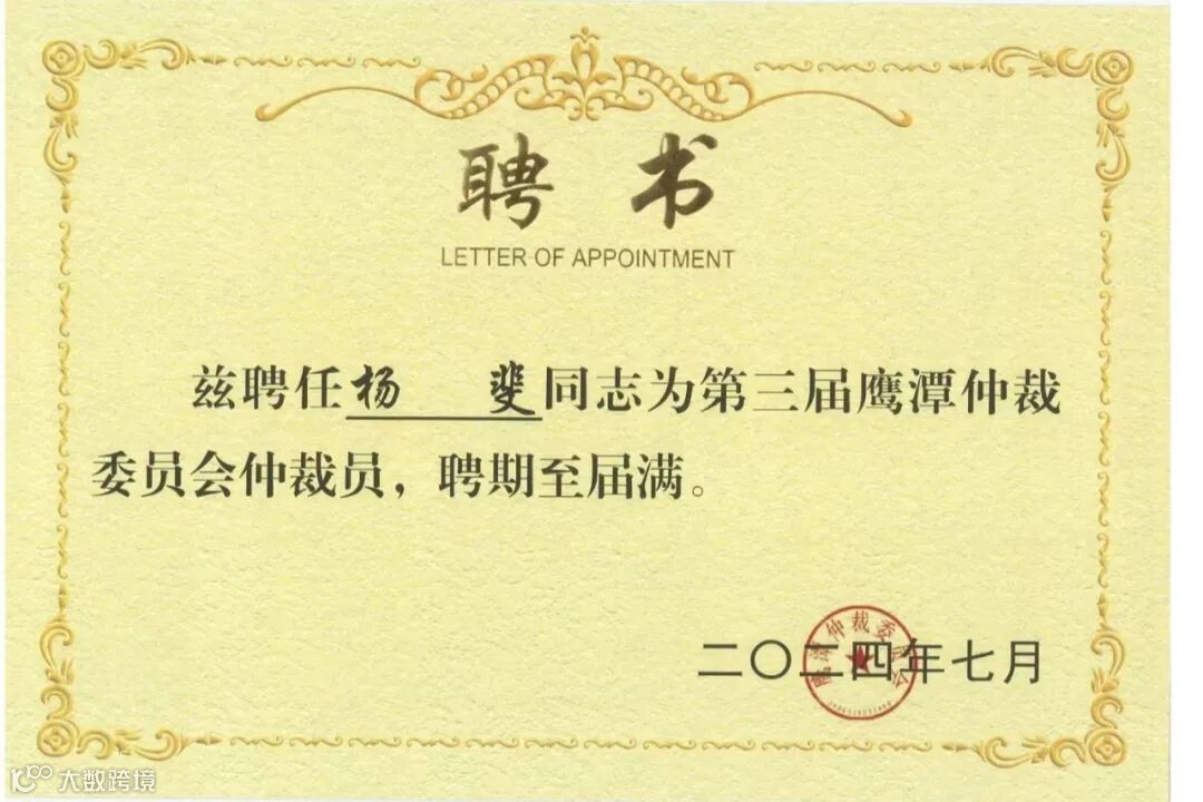 简讯 | 广信君达合伙人杨斐律师获聘为第三届鹰潭仲裁委员会仲裁员