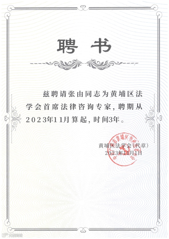 黄埔区法学会常务副会长张帆主持会议并发表讲话。会上公布了首席法律咨询专家名单,其中,本所张由律师获聘为黄埔区法学会首席法律咨询专家,聘期三年。