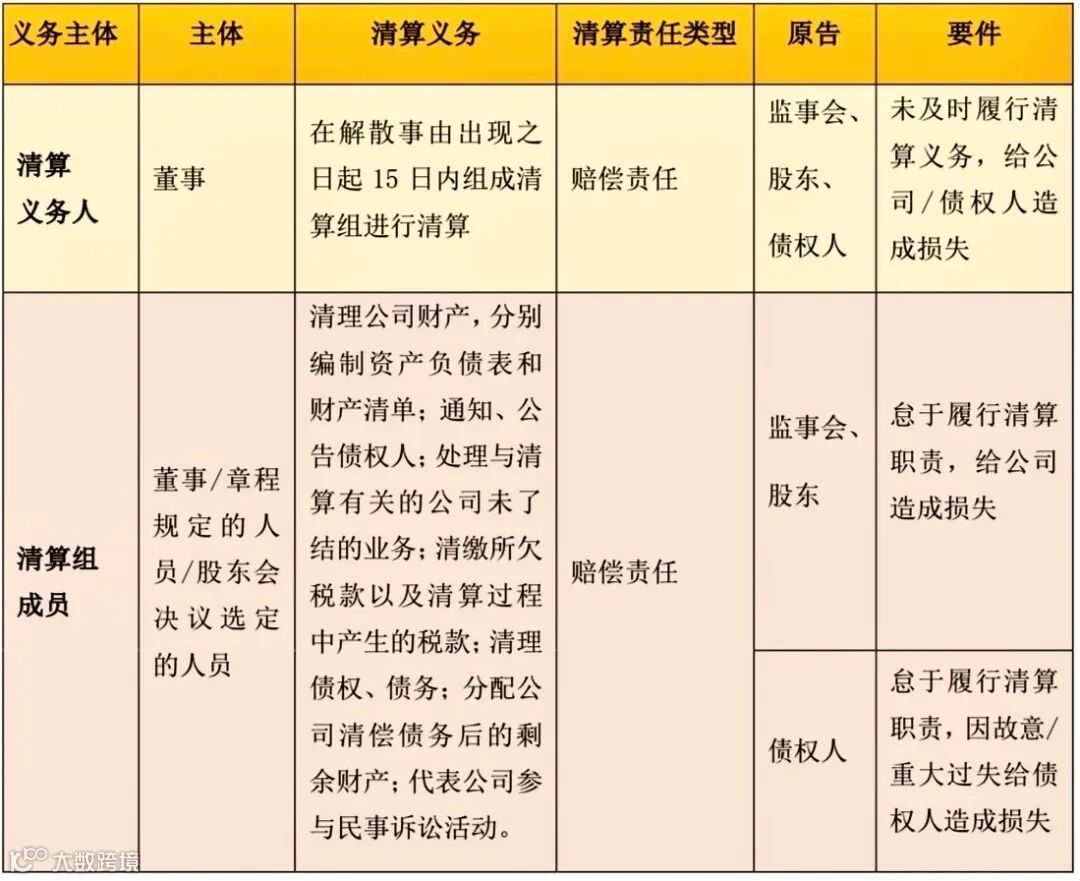 Q2:新《公司法》取消了股东的清算义务,明确了“清算义务人”“清算组”“清算组成员”等概念,在公司清算过程中,负有清算义务的主体包括哪些?承担何种清算责任?