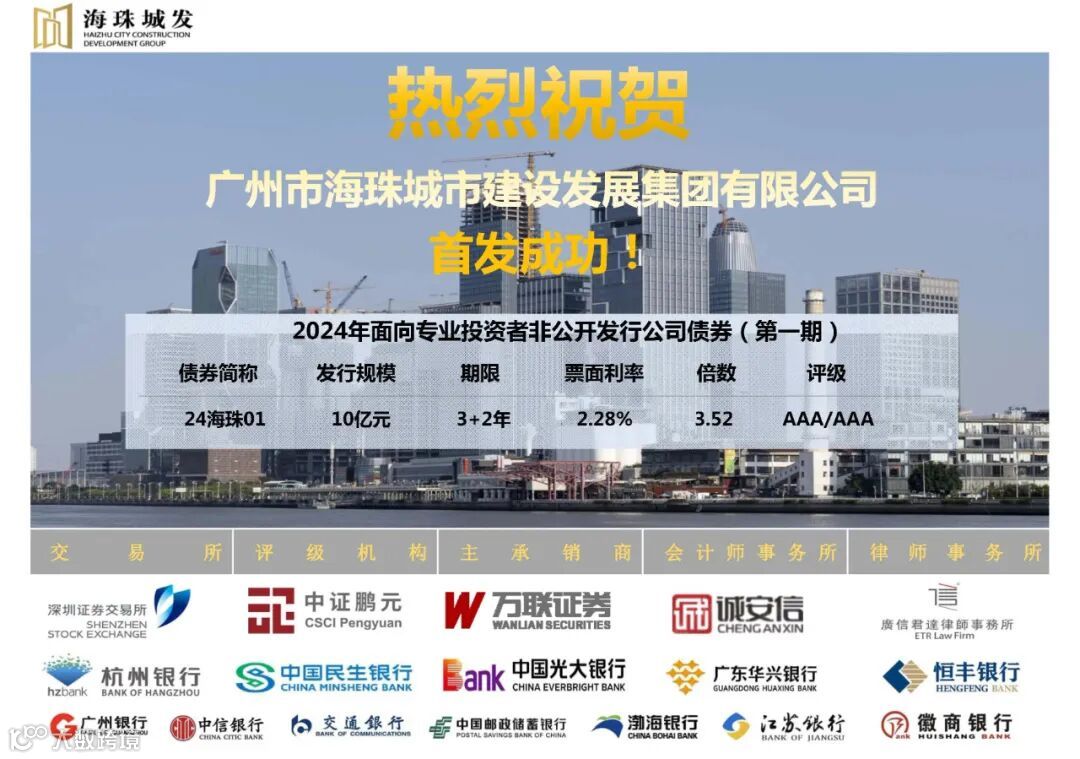 由本所律师官招阳、廖杰文、黄丽榆、张嘉惠共同组成项目工作组,为广州海珠城发集团发行2024年首单非公开公司债券开展法律尽调、参与起草和审核相关发行文件等法律工作。