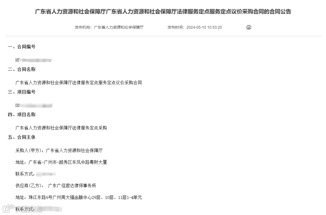 业绩 | 广信君达再次获聘广东省人力资源和社会保障厅法律顾问