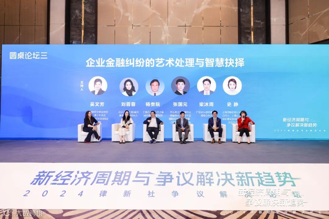 近日,新经济周期与争议解决新趋势·2024律新社争议解决论坛(简称“争议解决论坛”),在上海隆重举行。来自全国各地的争议解决领域专家学者、精英律师、知名企业法总、法律科技公司以及媒体代表等200余人齐聚一堂,共同关注当前经济周期下争议解决领域的新趋势及热点问题。在圆桌对话环节,6位在企业金融纠纷领域颇有建树的嘉宾代表围绕“企业金融纠纷的艺术处理与智慧抉择”主题深入探讨,广信君达律师事务所高级合伙人梁沐周律师代表本所发言。