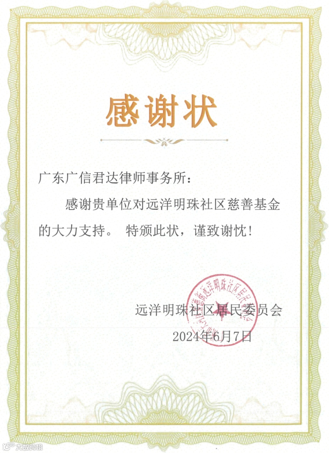 上午,猎德街道远洋明珠社区慈善基金捐赠仪式,在K11公益市集活动主舞台举行。猎德街道“双百工程”社会工作服务站代表给广信君达颁发感谢状。